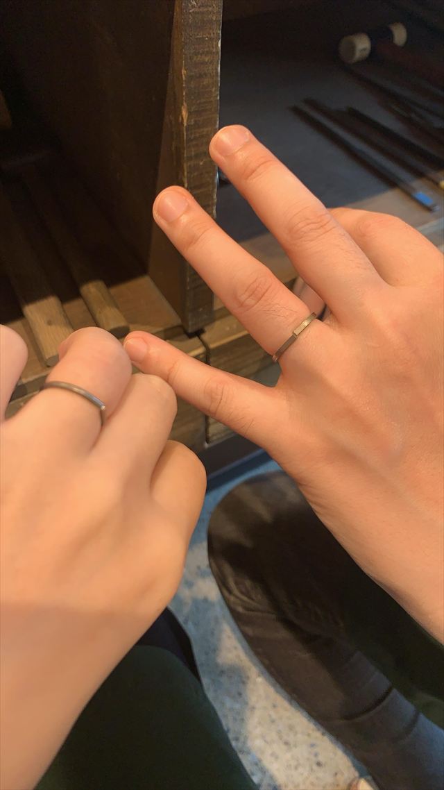 こうすると色の違う2つのリングがクロスして1つの指輪となりますから、非常におしゃれです。
